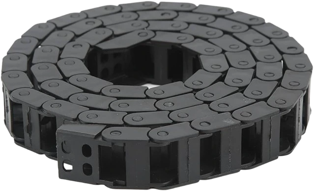 High-strength chains designed to guide and protect cables, hoses, and hydraulic lines, ensuring smooth movement and preventing wear in dynamic industrial applications.