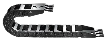 Protective cable-carrying chains engineered to organize and guide moving cables, providing smooth travel, reduced stress, and long service life in automated machinery.